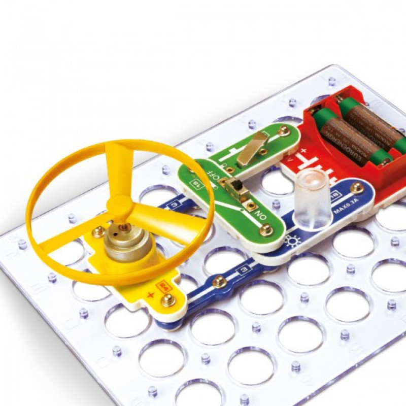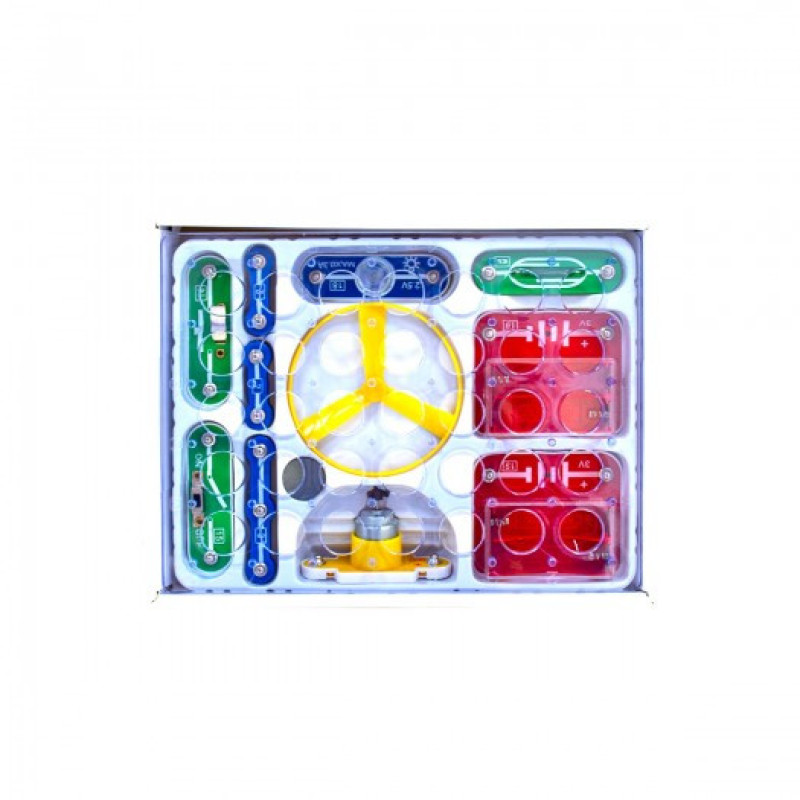 Конструктор пропонує 15 різних схем, для збору яких дитина зможе скористатися провідниками, елементами живлення, вимикачами, лампами і електромоторами, збираючи їх і відкриваючи для себе багато нового і цікавого, при цьому не використовуючи небезпечний метод паяння.