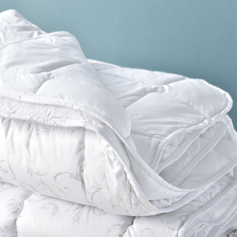 Універсальну антиалергенну всесезонну ковдру можна використовувати цілий рік. Тепла зимова та літня ковдри скріплюються між собою за допомогою карабінів по кутах. Спеціальна технологія стьобання на спеціальному обладнанні підвищує якісні характеристики виробу. Ексклюзивне художнє стьобання додає ковдрі презентабельності. М'яка і приємна на дотик тканина простьобана разом з наповнювачем. Щільність тканини покращує зносостійкі характеристики ковдри. Наповнювач з екологічно безпечного матеріалу добре пропускає повітря і зберігає форму, не створює умов для розвитку грибків і кліщів.