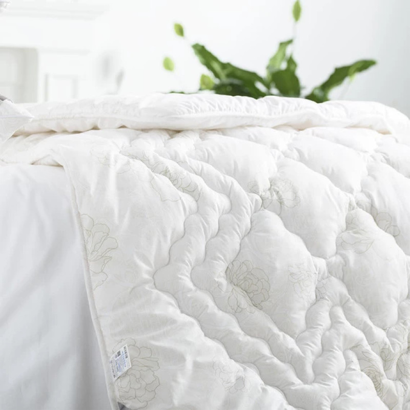 Полегшена ковдра забезпечує хорошу циркуляцію повітря і чудово підходить для прохолодних ночей у літній період. Силіконізовані волокна наповнювача мають високу ступінь пружності, завдяки чому виріб швидко відновлює свою форму і не мнеться. М'яке і легке антиалергенна ковдра, простеганное художньої стежкой, зберігають свою міцність і первісний вигляд в процесі експлуатації і після прання.