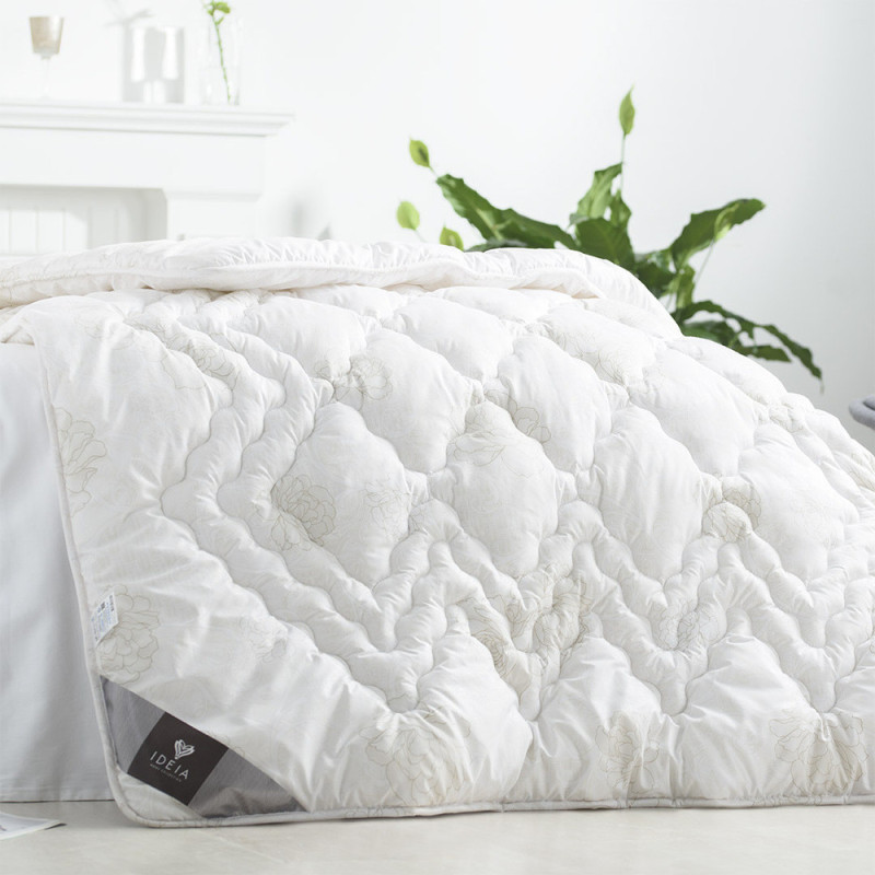 Стандартна всесезонна ковдра прекрасно зберігає тепло під час сну і забезпечує хорошу циркуляцію повітря. Силіконізовані волокна наповнювача мають високий ступінь пружності, завдяки чому виріб швидко відновлює свою форму і не мнеться. М'яка і легка антиалергенна ковдра, простьобана художнім стьобанням, зберігає свою міцність і первісний вигляд у процесі експлуатації та після прання.