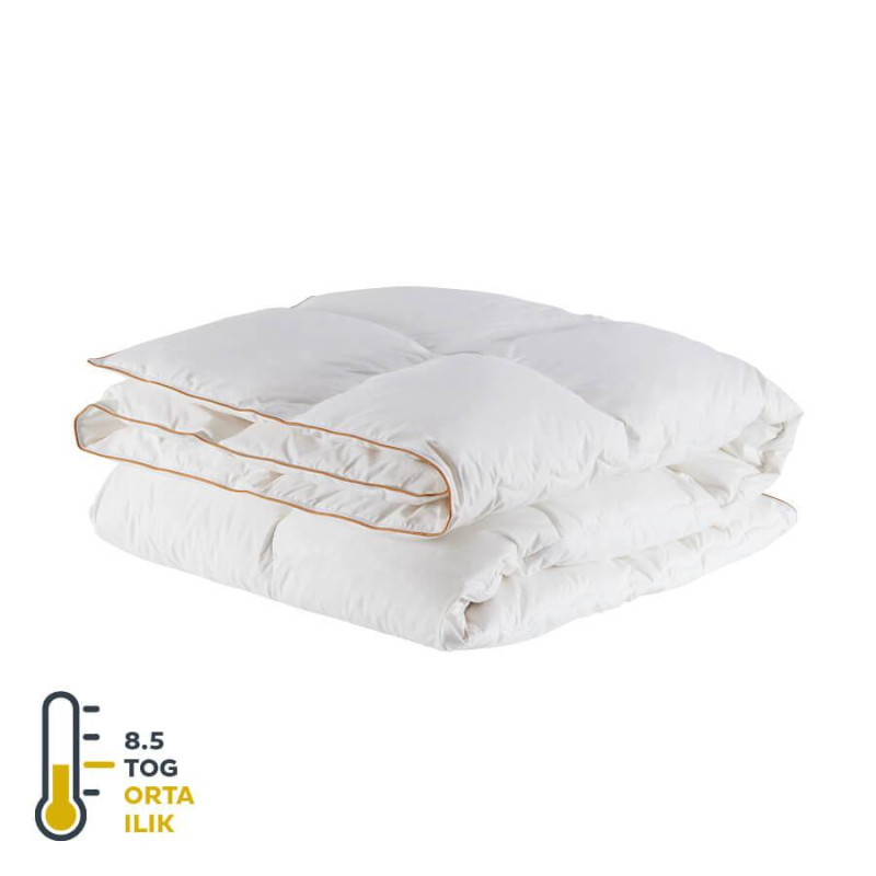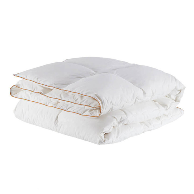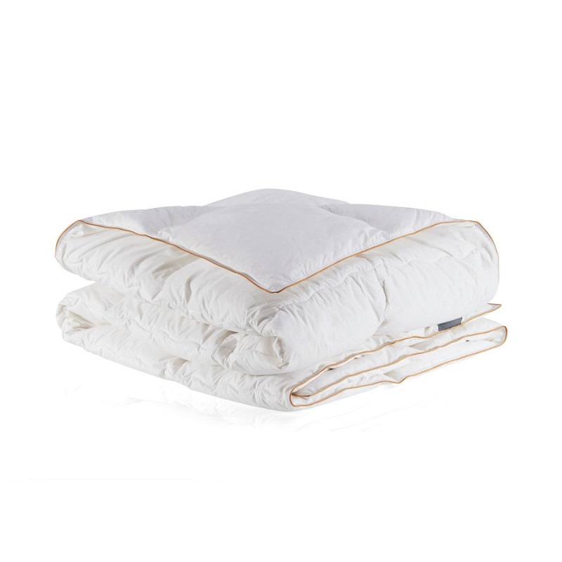 Пухова ковдра Bronze зі ступенем теплоти TOG 8.5 забезпечить комфортною теплотою і затишком, завдяки своїй легкості та легкості, ідеально підходить для міжсезоння. Пухове наповнення в ковдрі становить 30%, що робить виріб м'яким і легким; 70% наповнювача - перо, завдяки якому ковдра набуває потрібного об'єму та повноти. Для наповнення використовуються добірні англійські пух і перо Сlass 1. Пух від природи має гігроскопічні властивості, добре пропускає повітря й тримає форму, завдяки цим якостям, пухові вироби "дихає", легкі, не деформуються та добре справляються з вологою.