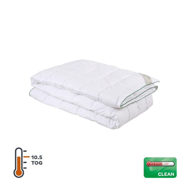 Ковдри та подушки Thermoclean - це унікальна серія продукції з передовим наповнювачем Thermolite® Clean, що володіє антибактеріальними та протикліщовими властивостями. Наповнювач зводить до нуля появу бактерій, що наділяє його також високими гіпоалергенними властивостями. Подушки та ковдри серії Thermoclean не мають запаху, стійкі до прання при 60°C, і не втрачають своїх властивостей після багаторазового застосування. М'яка тканина має ніжні тактильні властивості, а наповнювач із порожнистою структурою дозволить вашому тілу дихати протягом усієї ночі. Оцініть переваги передових технологій, подаруйте собі здоровий та спокійний сон з нашою серією ковдр та подушок Thermoclean!