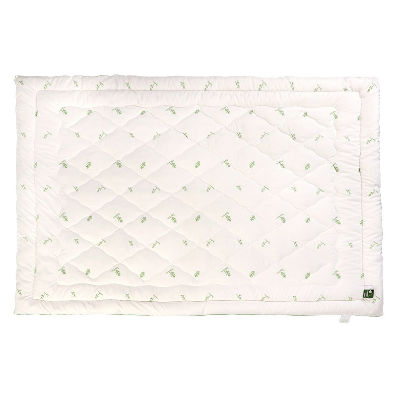 Чохол ковдри виконаний із сучасного матеріалу — мікрофібра з малюнком «бамбук», гарний дизайн та кант зеленого кольору не зможе залишити вас байдужими до цієї колекції. Мікрофібра не викликає алергічних реакцій, не сідає і не линяє, що дуже важливо, оскільки ковдра підлягає пранню.