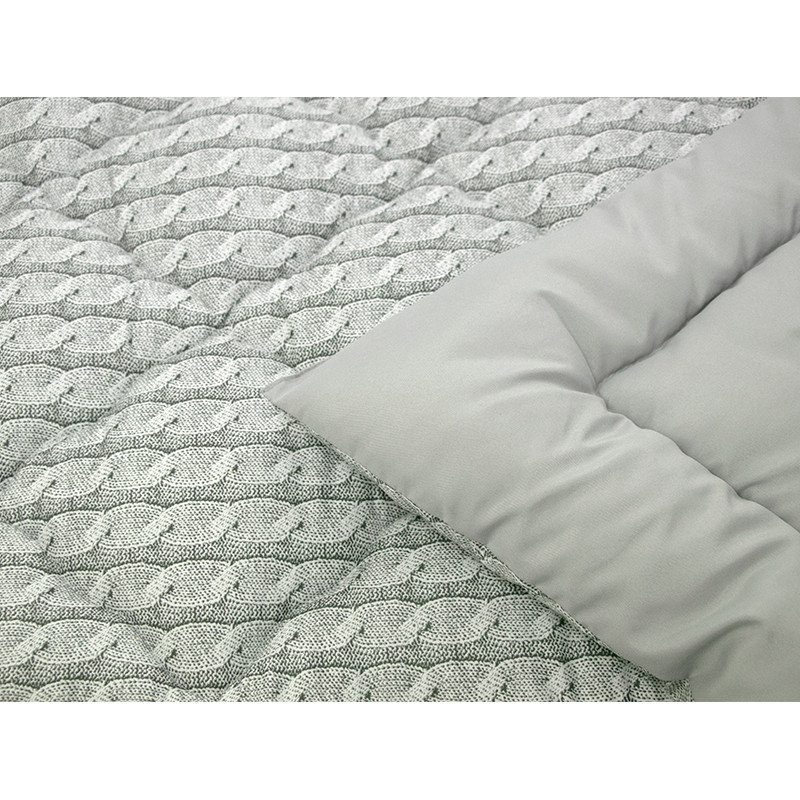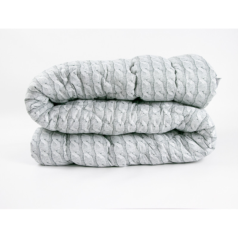 Дизайн виробу, незвичайний, один бік з нанесенням малюнка під в'язку техніка кіска, додасть родзинку в інтер'єр вашої спальні, таку ковдру не хочеться ховати в підковдру, але щоб доглядати за чистотою ковдри було легше, ми розробили постільні комплекти Grey Braid з таким же малюнком. Доповнити ковдру також можна подушками для сну, покривалом і декоративними подушками колекції Grey Braid. Принт виконаний у сірих відтінках, з імітацією в'язаного полотна дуже затишний.