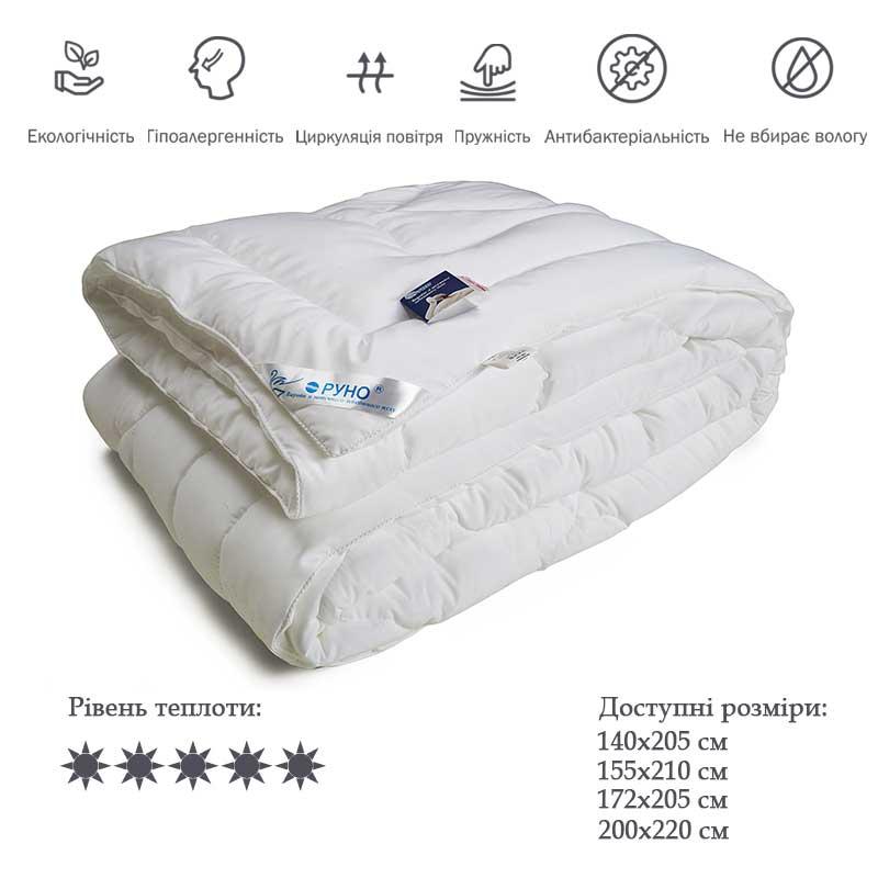 Ковдра Руно - штучний лебединий пух тепла біла двоспальна 172x205 см 420 гр/м2 (100001494)