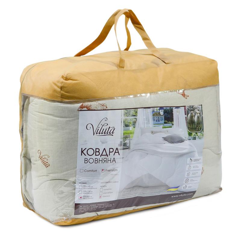 Ковдра Viluta вовняна в ранфорсі Premium Light 140*205 полуторна (200)