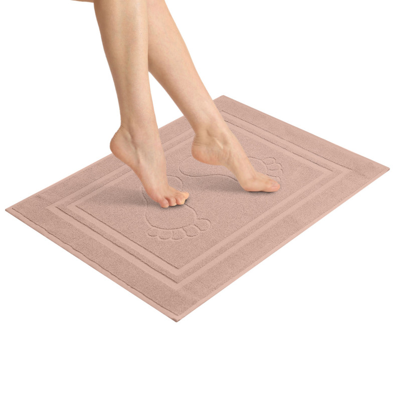 М'який і щільний килимок з 100% натуральної бавовни з жакардовим візерунком у вигляді слідів ніжок – ідеальне рішення для ванної кімнати, спальні або гардеробної. Розмір 50х70 см підходить для будь-якої зони відпочинку або санвузла.