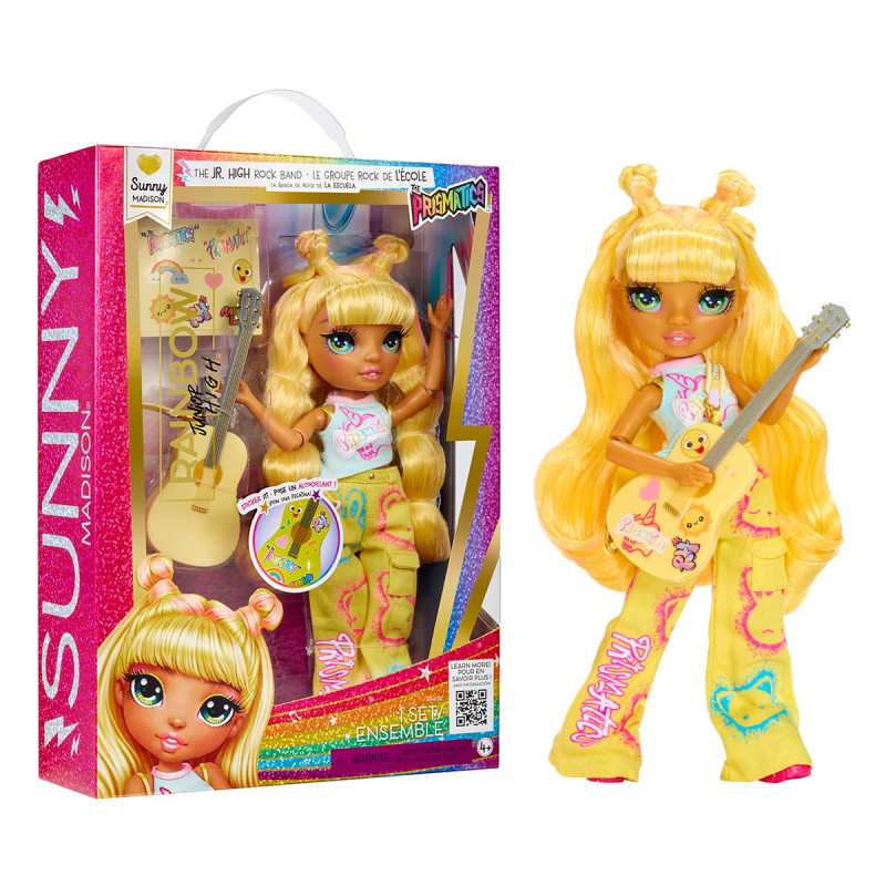 Зустрічайте нову серію RAINBOW HIGH «Junior High Rockband» - група, яка диктує ритм не тільки в музиці, але і в моді! Чотири молодші версії улюблених героїнь збираються разом, щоб створити власну групу: з гітарами, мікрофонами і вибуховим настроєм. Від репетицій до справжніх концертів - шоу триває, а ваша уява задає ритм! Зберіть їх усіх і створіть свою модну і стильну веселку!