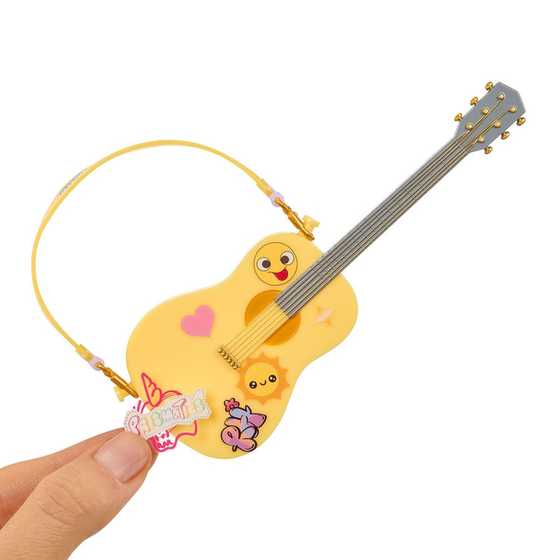 У комплект входить - 1 лялька, 1 топ, 1 штани, 1 пара взуття, 1 ланцюжок для штанів, 1 іграшкова гітара з ремінцем, 1 лист;