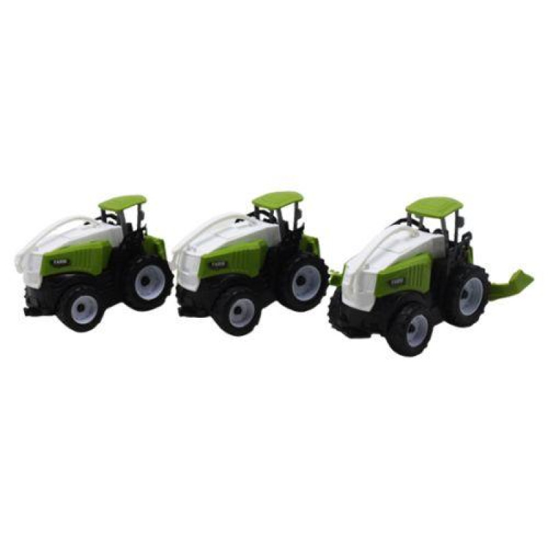 Набір комбайнів. Складається з трьох комбайнів та додаткових частин. В кожного комбайна є рухомі частини. Виготовлено все з якісного пластику. Набір чудово підійде для веселих ігор любителям сільськогосподарської техніки.