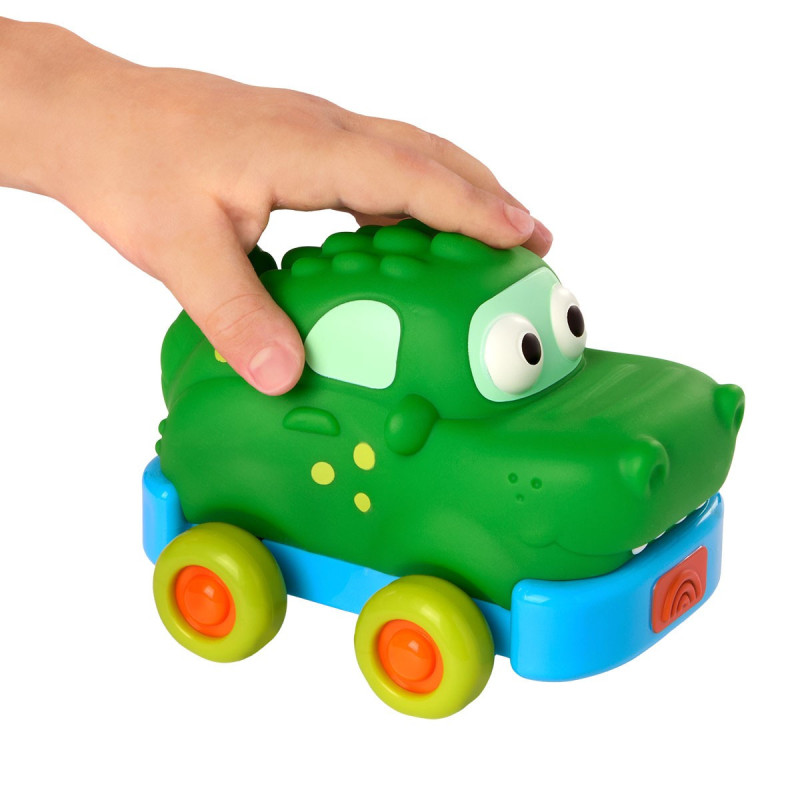 - Машинки виконані у вигляді трьох тваринок: бегемотика, зебри й крокодила.