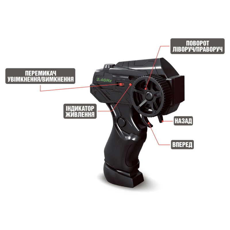 У комплект входить - автомобіль, пульт радіокерування, акумулятор, USB-шнур;