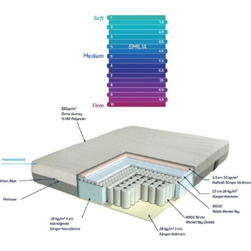 Для поціновувачів передових технологій бренд Othello створив новинку – матрац Emilia Hybrid. Подвійний пружинний блок, що складається з Pocket Spring (системи незалежних пружин) і Mini Pocket Spring, створює не тільки комфортний анатомічний ефект, що повторює форму Вашого тіла, але й посилює ортопедичні властивості матраца, підтримуючи хребет у правильному положенні під час відпочинку. Верхній шар виробу складається з високоеластичної піни з ефектом пам'яті, завдяки цьому матеріалу матрац набуває додаткової м'якості та гнучкості, що, неодмінно покращує якість сну. Подібне поєднання шарів гарантує зручне та розслаблююче розташування тіла. Спеціальний губчастий шар забезпечить чудову терморегуляцію.