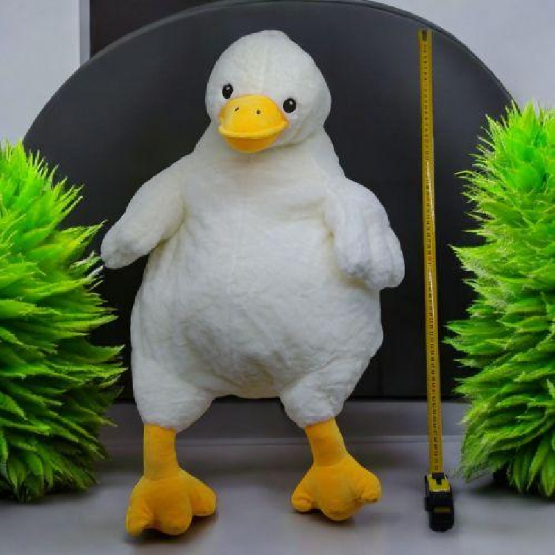 Кумедна м'яка іграшка - гусак, створений для обіймів. Виконана з якісних та безпечних матеріалів. Розмір іграшки - 70 х 35 х 35 см. Буде чудовим подарунком як дитині, так і дорослому. Іграшка-обіймушка може використовуватися як подушка або прикраса інтер'єру.