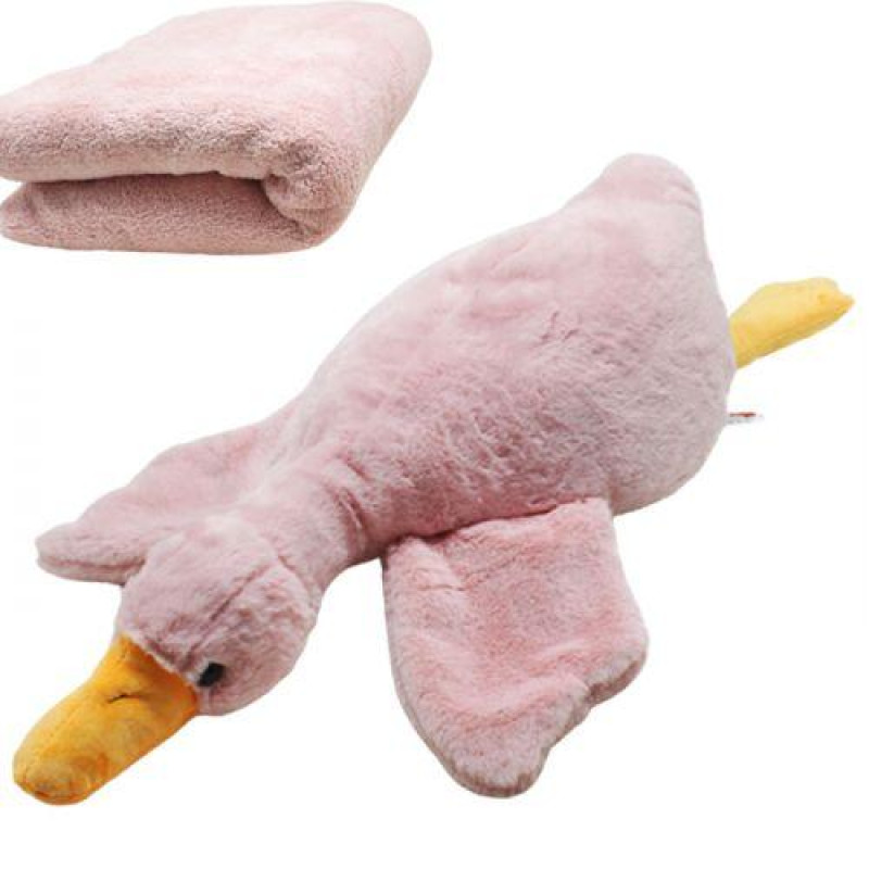 М'яка іграшка із пледом стане чудовим подарунком. Іграшка приємна на дотик, виконана у вигляді гусака, який ідеально підходить для обіймів. Плед знаходиться всередині іграшки, розміром 120х80 см. Розмір іграшки 75х30х17 см. Комплект виконаний з якісних та безпечних матеріалів. Колір пледу трапляється рандомно.