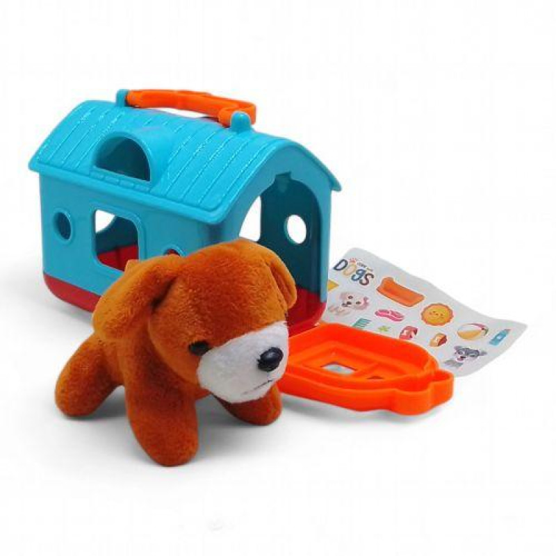 М1яка іграшка "Песик з переноскою". Усередині - м1який песик розміром 10 см, який стане вірним другом в іграх вашого малюка. У наборі є наклейки, що дає можливість прикрасити перенесення на свій смак і проявити креативність. *Собачка всередині може відрізнятись від тієї, що на фото.