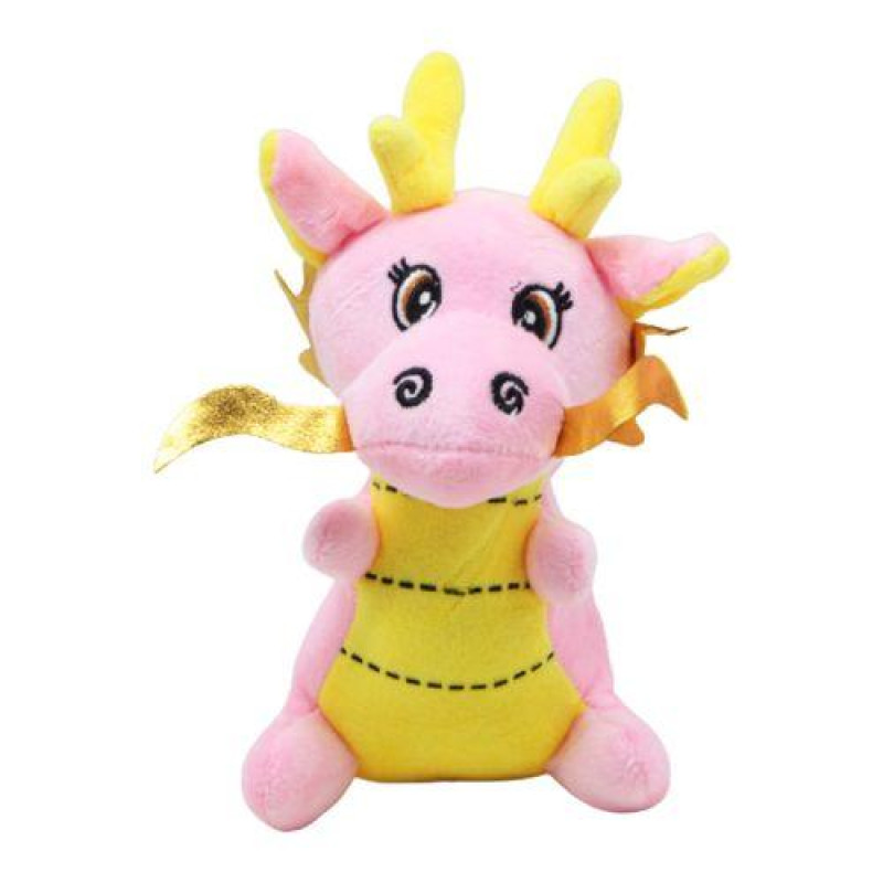 Мила м'яка іграшка у вигляді кумедно дракончика. Іграшка м'яка і приємна на дотик, виготовлена з якісних матеріалів. Очі вишиті на тканині. Іграшка щільно набита синтепоном та добре тримають форму. Розмір іграшки: 18 х 20 х 12 см. Іграшка буде чудовим подарунком дитині будь-якого віку.