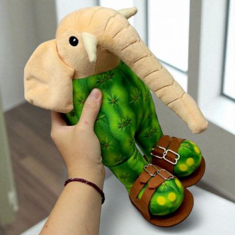 Лірілі Ларіла - це двонога слониха з тілом кактуса та двома капцями, персонаж популярного мему "Італійський брейнрот", створеного за допомогою штучного інтелекту. Абсурдний абсурд - це про них: від історії персонажів до їхнього зовнішнього вигляду, що й робить їх такими популярними. М’яка іграшка створена з якісних матеріалів. Рекомендовано для діток, старше 4 років.