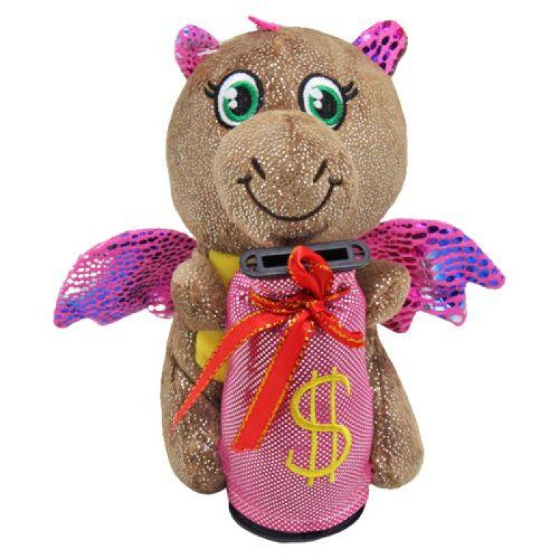 Скарбничка музична "Дракончик", з крилами. М'яка, приємна на дотик, іграшка, яка тримає в лапках мішечок для грошей. Як тільки монета опускається в скарбничку, дракончик починає співати веселу пісеньку (українською мовою). Іграшка оснащена присоскою на петельці, за допомогою якої можна прикріпити її до будь-якої гладкої поверхні. Розмір: 21 х 17 х 11 см.