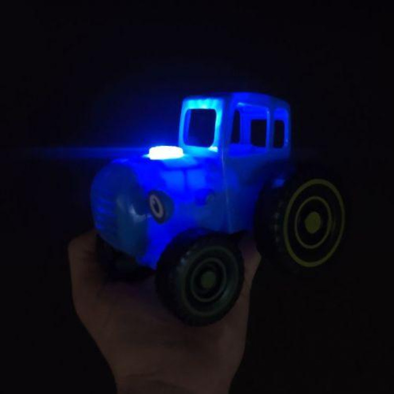 Музична іграшка у вигляді персонажа мультфільму "Синій трактор". Виготовлена із пластику, в комплекті є кільце та шнурок, за який трактор можна вести за собою. Є світлові ефекти, співає пісеньку українською мовою. Працює від батарейок AG13 (є в комплекті).