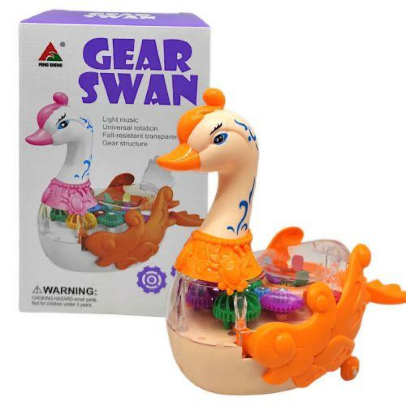 Музична іграшка "Лебідь" – чарівний супутник для малюків, який самостійно весело їздить у різні боки. Оснащений музикою та яскравим підсвічуванням. Усередині прикрашений кольоровими шестернями, що обертаються, а його крила і лапки весело рухаються, приносячи радість і натхнення вашому малюку. Працює від 3-х батарейок АА (немає в комплекті).