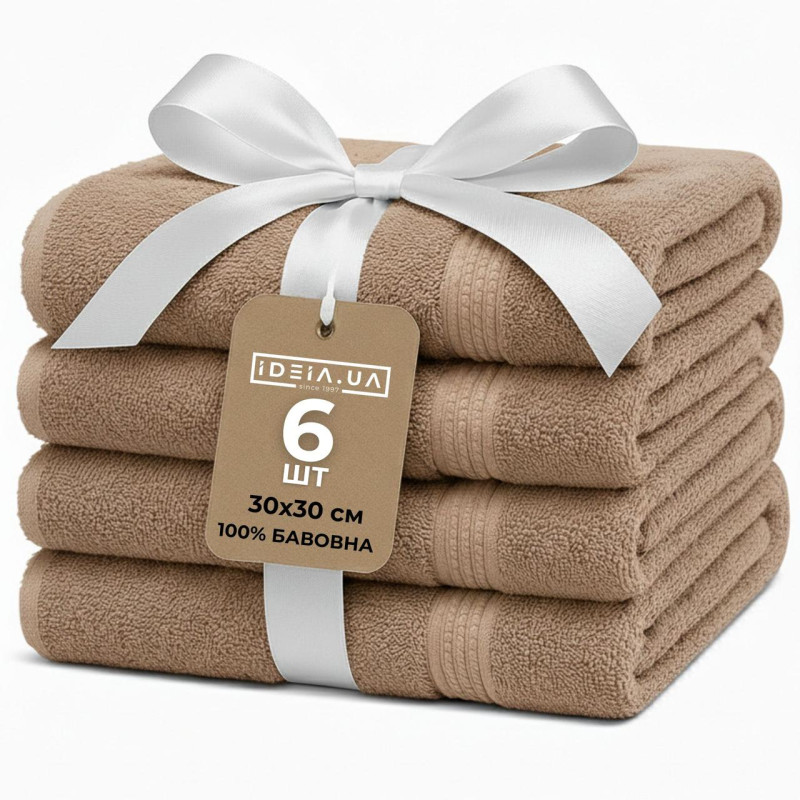 Набір 6 шт серветок махрових бавовна IDEIA - 30x30 бежевий (550 гр/м2)