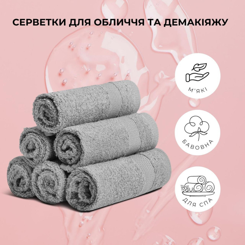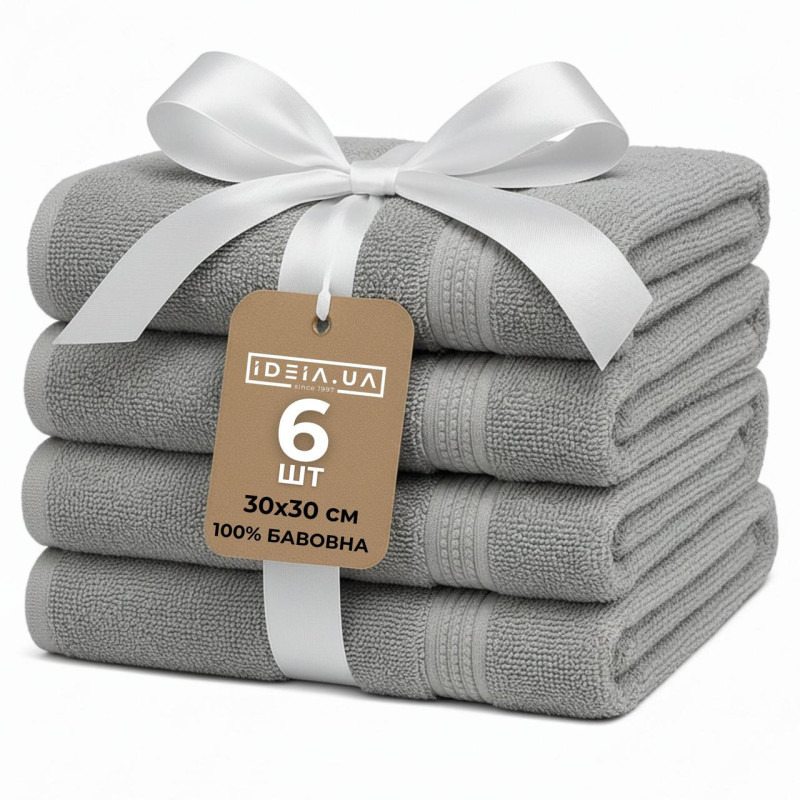 Набір 6 шт серветок махрових бавовна IDEIA - 30x30 сірий (550 гр/м2)