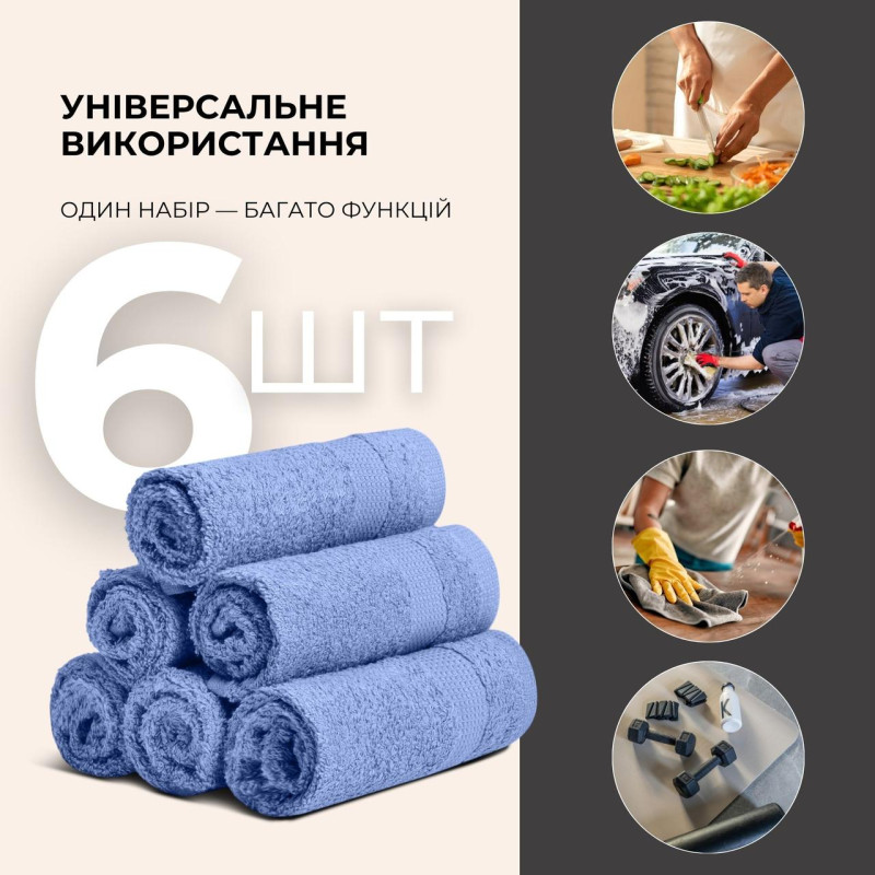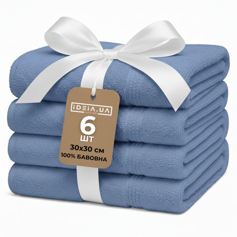 Набір 6 шт серветок махрових бавовна IDEIA - 30x30 синій (550 гр/м2)