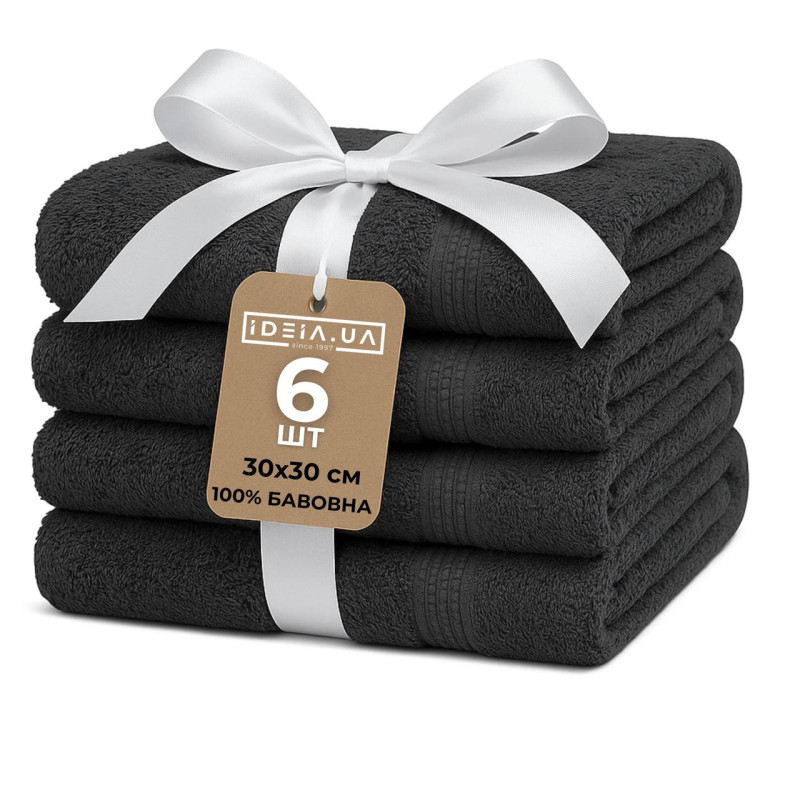Набір 6 шт серветок махрових бавовна IDEIA - 30x30 темно-сірий (550 гр/м2)