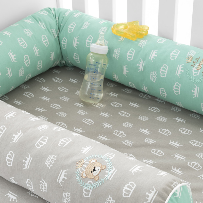 Набір бортик-валик захисний у ліжечко IDEIA Papaella 120x15 см + 60x15 см бавовна м'ята/корона бежевий