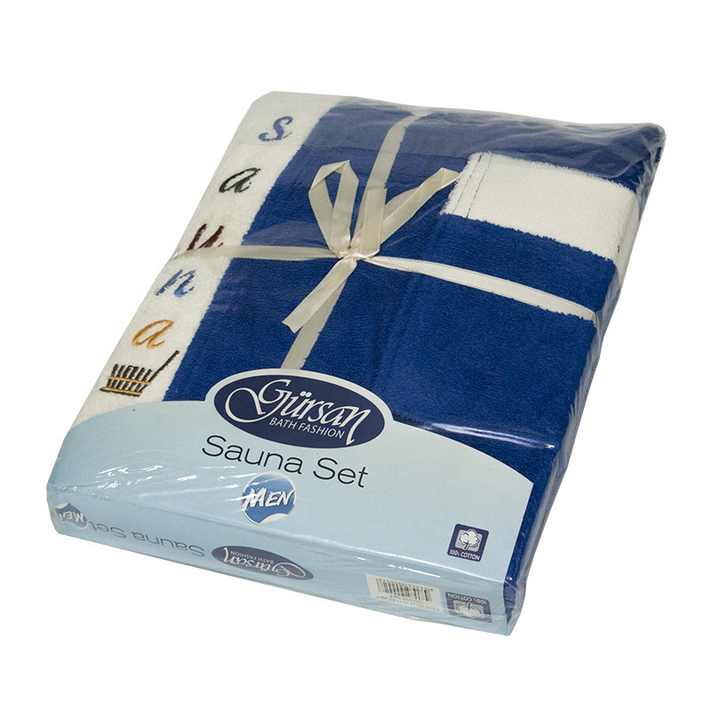 Набір для сауни Gursan Cotton чоловічий — Blue (рушник 65*150 + 50*90 + капці)