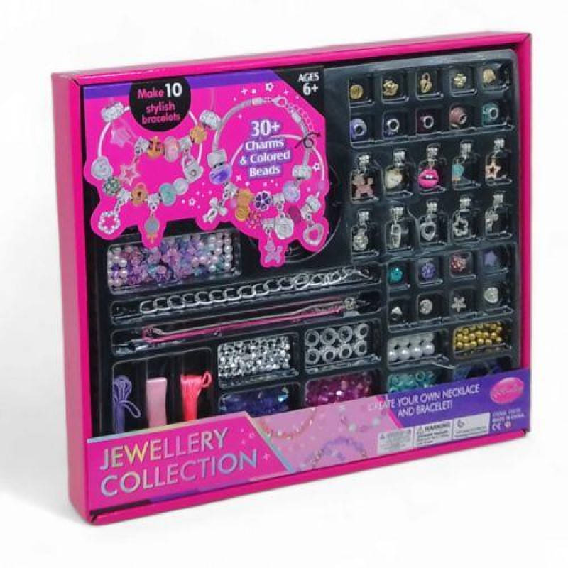 Створюй унікальні браслети та намиста разом з набором біжутерії для справжньої любительки моди! У комплекті безліч цікавих різнокольорових намистин різної форми, а також підвіски, які доповнять дизайн браслета, набір буде цікавим не тільки для створення браслету собі, а щей для найкращої подруги - оскільки в наборі присутні однакові парні основи під браслети. Рекомендовано для дітей від 6 років.