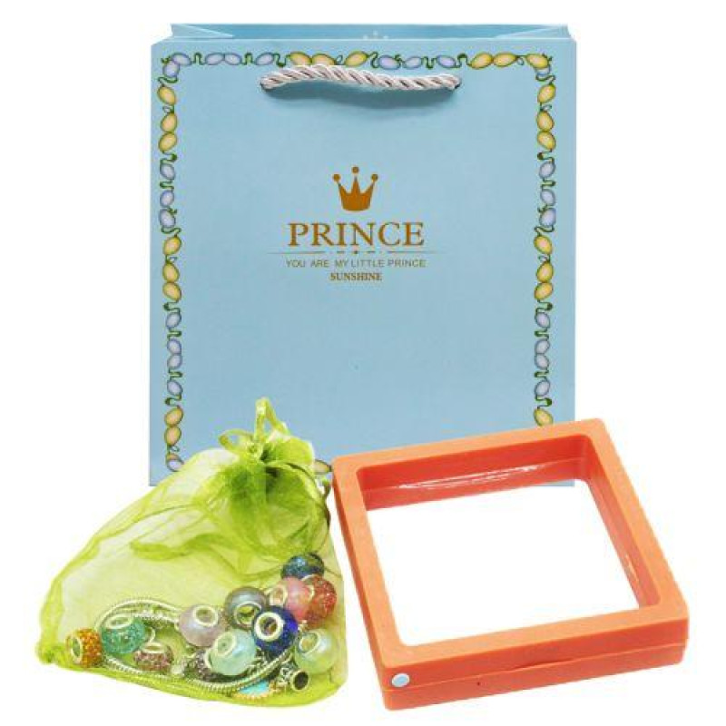 Подарунковий наборчик, з яким можна створити 2 красиві браслетики своїми руками. Укомплектований у гарний подарунковий пакет із ручками. Усередині нього знаходиться мішечок з кольоровими намистинами, підвісками та двома металевими основами для браслета. Також у наборі є оригінальна двостороння рамка із плівкою.