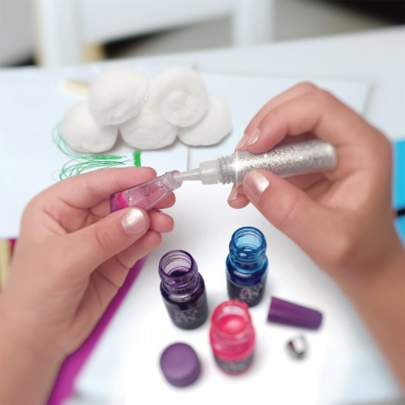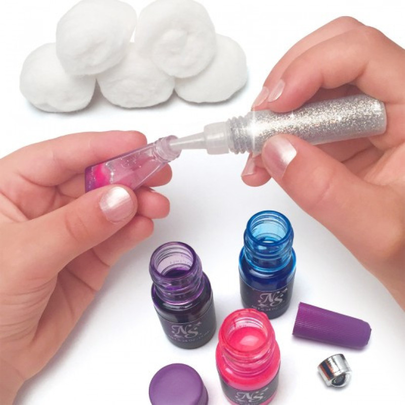 В комплект входить:5 кришталевих пляшок, пляшечка з блискітками, 4 пляшки чорнила, 3 підвіски, 3 блискучі стрічки, ватн