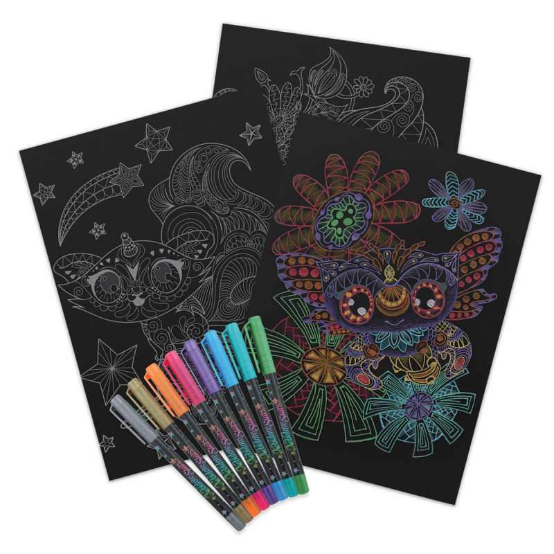 У комплект входить - 60 розмальовок, 8 гелевих ручок;