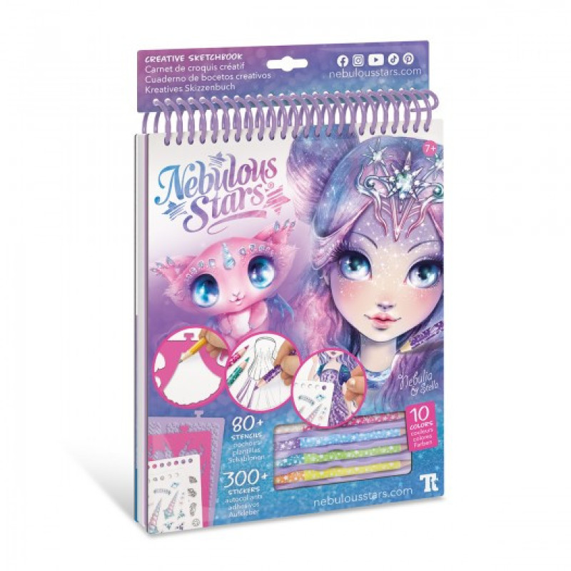 Зірки запрошують вас до створення нових зоряних шедеврів. Це Набір для творчості – Скетчбук: Небулія, мотиви космосу! Відкрийте для себе історії Небулії з кожною з цих 35 картин. Поринайте у різнобарвний світ космосу та відчуйте зоряне натхнення!
