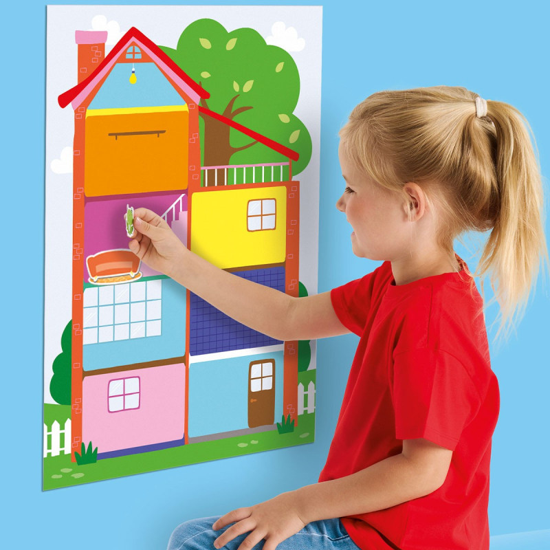 Набір для творчості з наклейками серії 'My first' — затишний дім — це чудовий спосіб познайомити малюків із предметами побуту та домашнім простором в ігровій формі. Великий постер із зображенням будинку можна прикрасити яскравими наклейками, розміщуючи їх у відповідних місцях. Це допомагає дітям краще розуміти, що є в кожній кімнаті, і розвиває логіку та уяву.