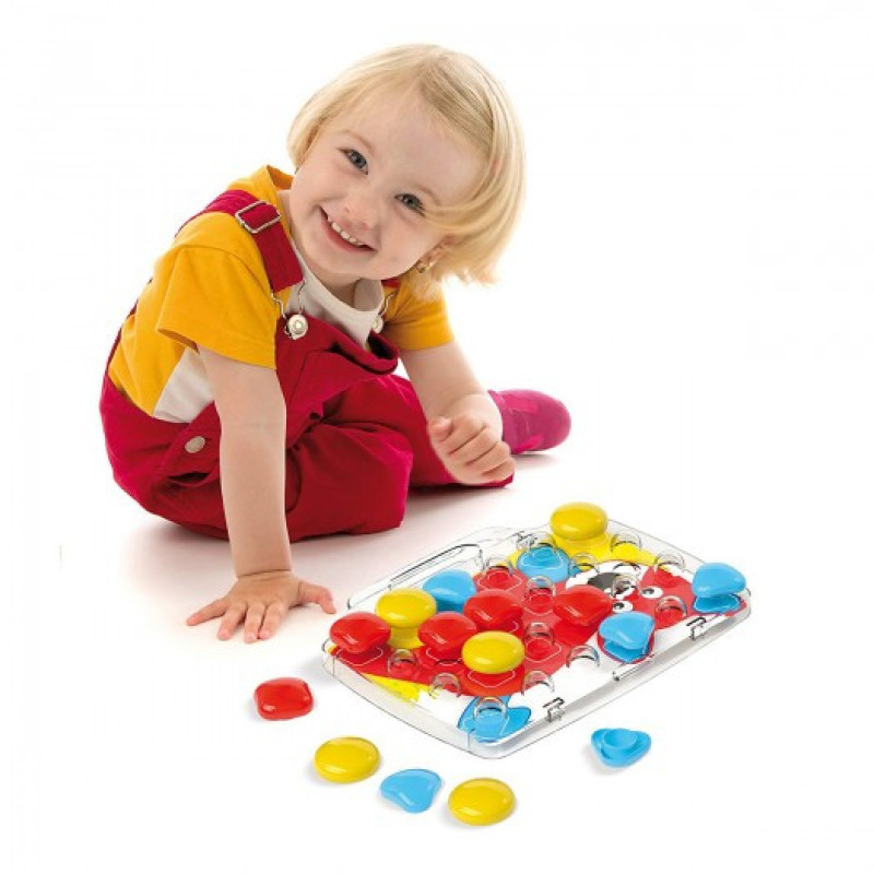 Розвиваючий набір - для занять мозаїкою (великі фішки (46 мм, 30 шт.) + Дошка-кейс) - створений для знайомства дитини зі світом форм, кольорів і фантазій.