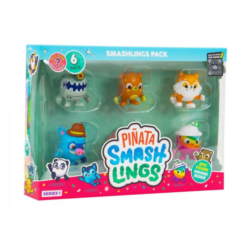 Знайомтеся зі Смешлінгами ближче! Вони веселі та яскраві, що намагаються наздогнати веселкового кита, щоб піймати якомога більше веселкових капсул. У наборі 6 фігурок Смешлінгів, розмір кожної фігурки – 3,5 cm. Поринайте у їхні пригоди та збирайте усю колекцію героїв Pinata Smashlings для більш веселої гри!