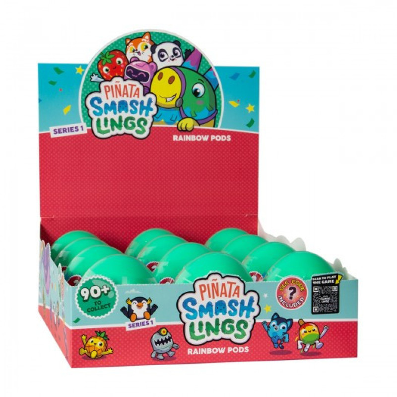 Знайомтеся зі Смешлінгами ближче! Вони веселі та яскраві, що намагаються наздогнати веселкового кита, щоб піймати якомога більше веселкових капсул. Розпакуйте та розкрийте яйце, щоб дізнатися, яких двох героїв отримали саме Ви! Розмір фігурок Смешлінгів – 3,5 cm. Всього у колекції 48 героїв. Поринайте у їхні пригоди та збирайте усю колекцію героїв Pinata Smashlings для більш веселої гри!