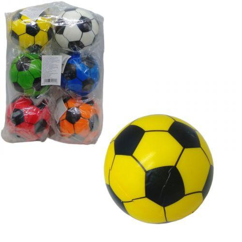 Набір яскравих фомових м'ячиків. Виконані у вигляді різнокольорових футбольних м'ячів. Відмінно підійдуть для активних ігор у приміщенні чи на вулиці. М'ячики дуже легкі та м'які, повністю безпечні для гри. Діаметр одного м'ячика – 10 см. Ціна за 6 шт. Укомплектовані у пакет.