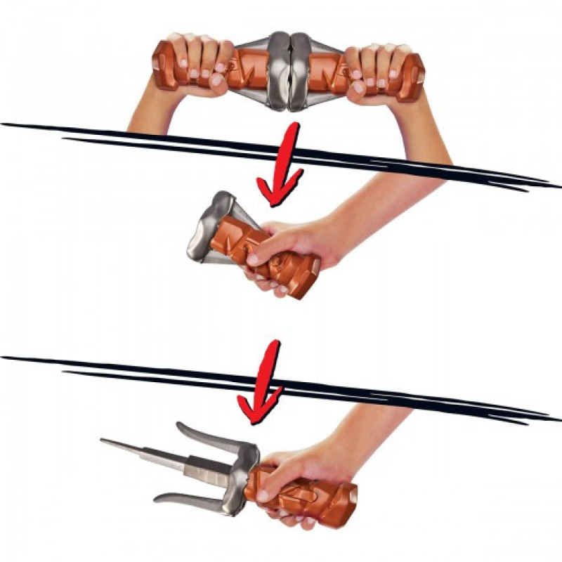 Коли лиходії атакують, вивільніть силу шаблі Рафа поворотом зап'ястя, натисканням кнопок і клацанням зап'ясть - леза шаблі розкриються і будуть готові до дії! Коли битва виграна, просто вставте леза назад у руків'я, клацніть і скрутіть руків'я разом - і ви готові до наступного бою.