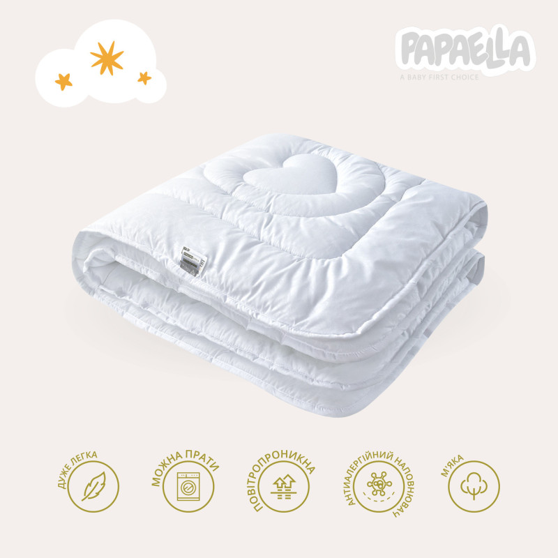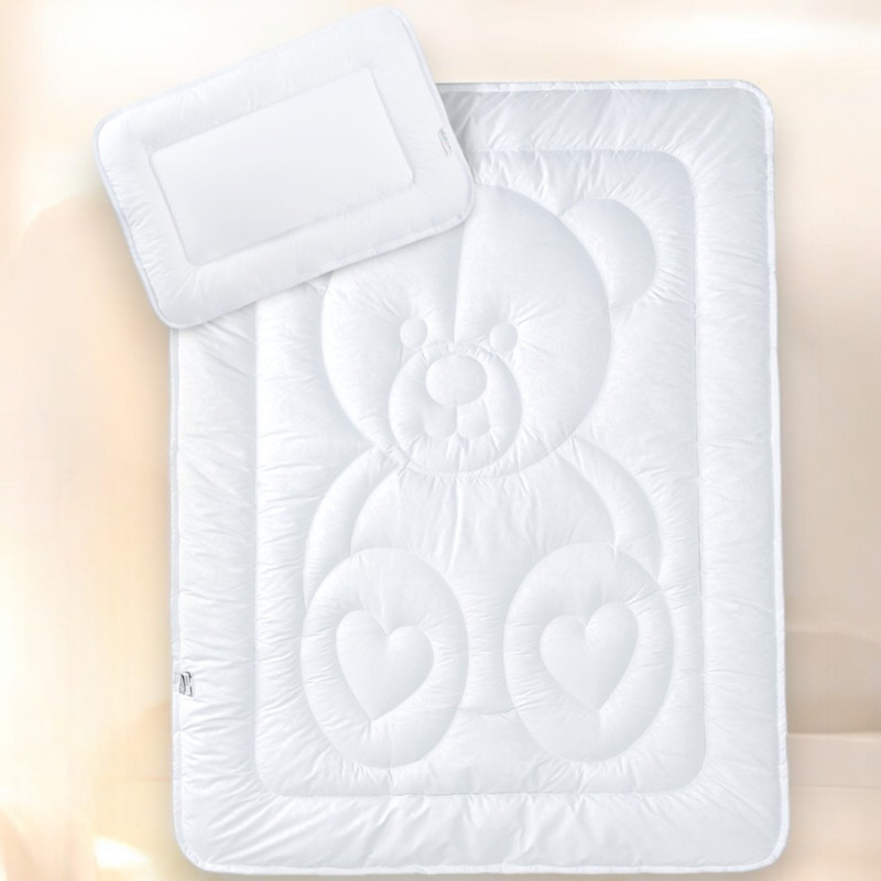 Комфортний для сну — подушка має оптимальну для малюків висоту, ковдру легку та теплу, вона не тиснутиме на дитину.