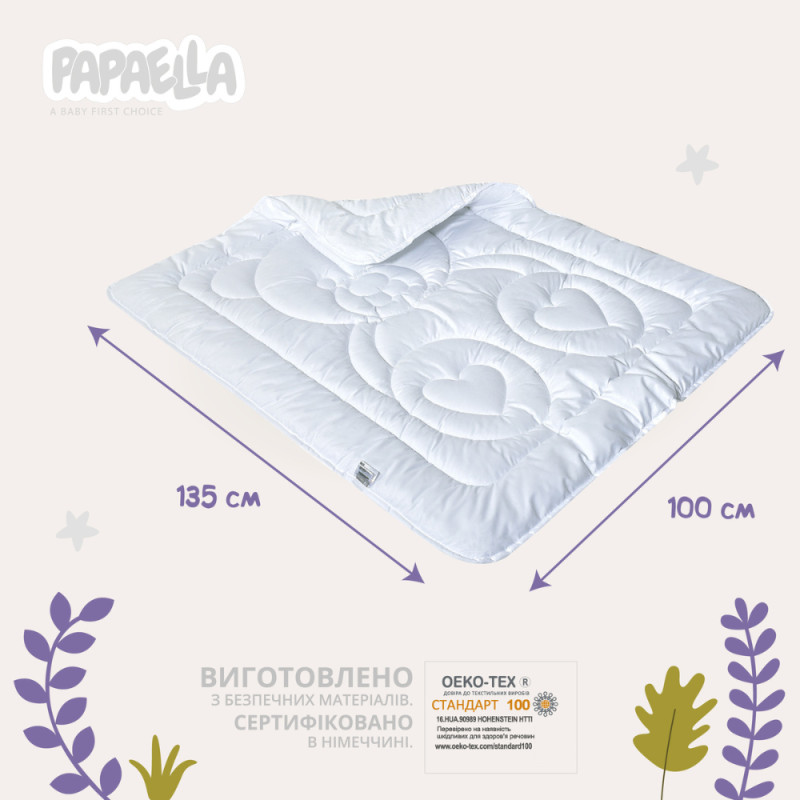Наповнювач: антиалергенне 100% силіконізоване поліефірне волокно (полотно)