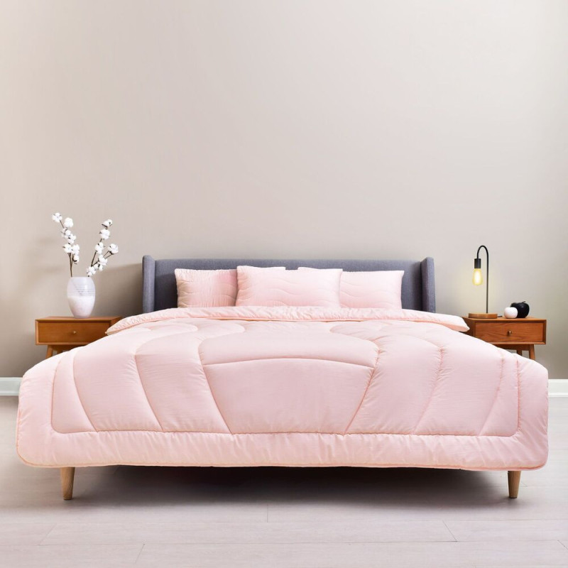 Ковдра колекції - тепла, легка, дихає, з приємним зовнішнім виглядом. Щільність - 250 г/м2. Верх виготовлений з мікрофібри з ефектом випраної бавовни, наповнювачем виступає силіконізоване поліефірне полотно.