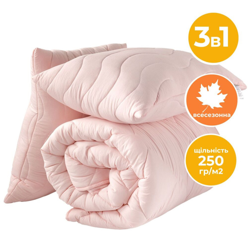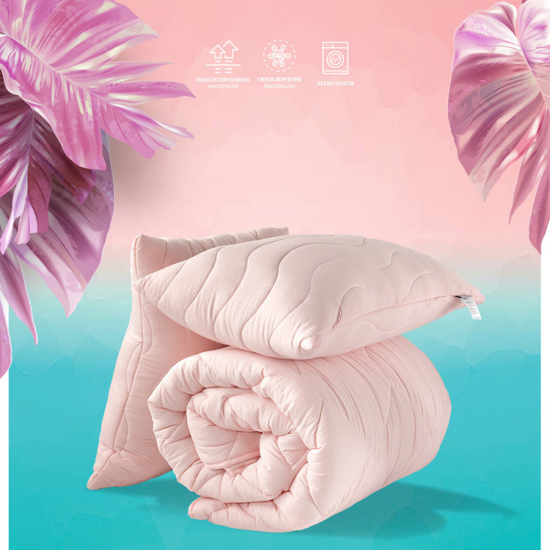 Набір ковдра з подушками IDEIA - Tropical пудра 200x220 + 50x70 (2 шт) євро