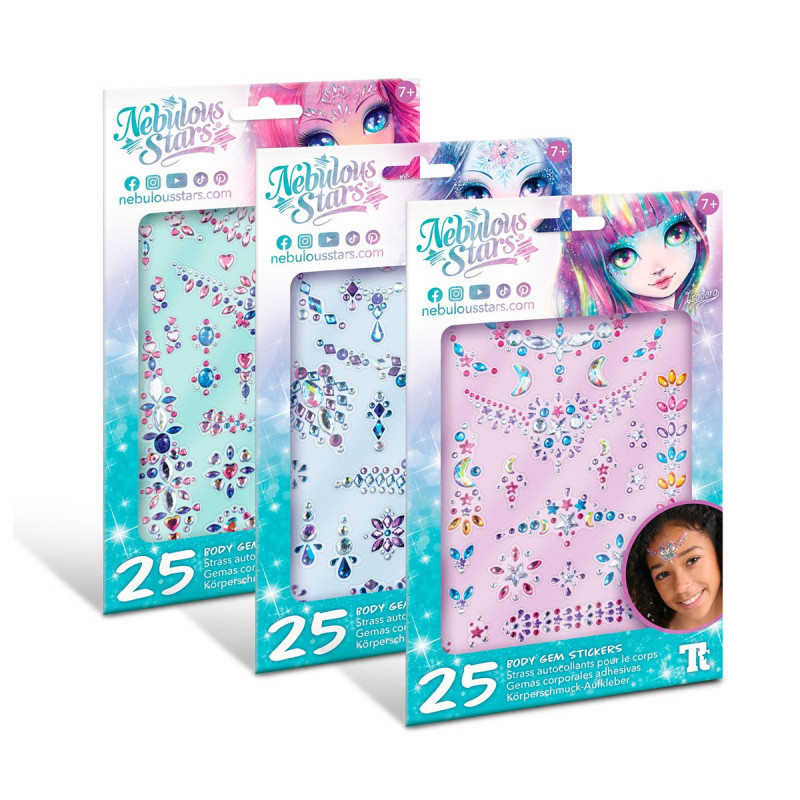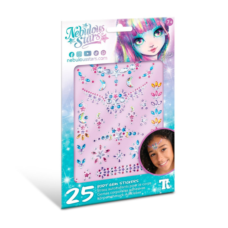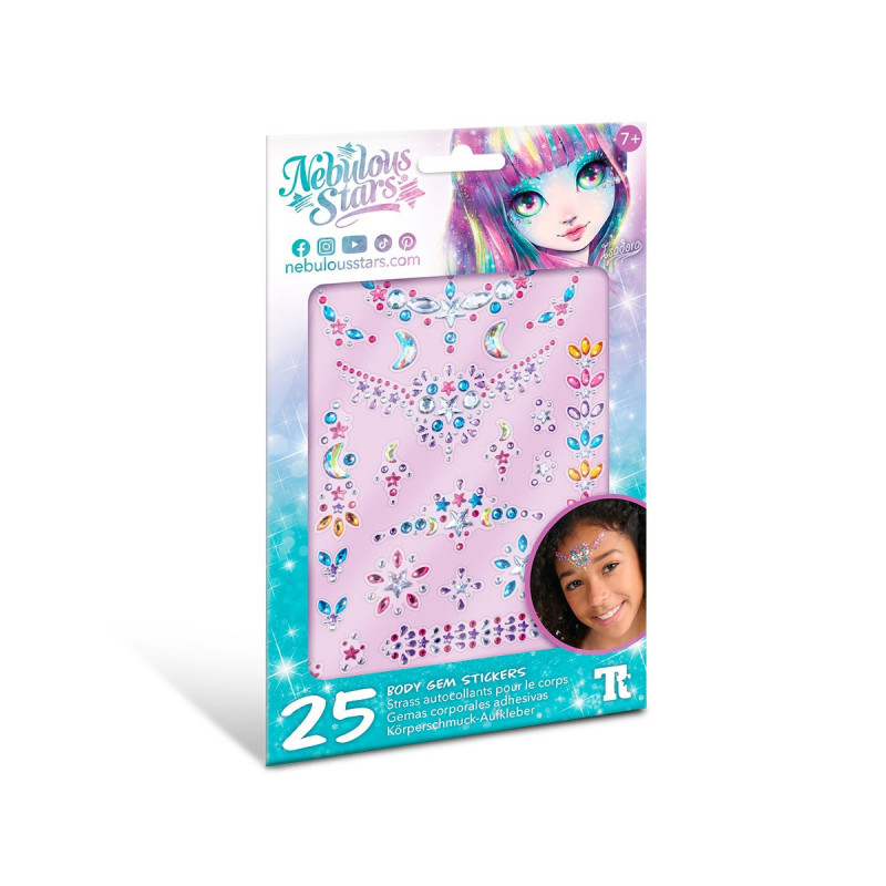 Сяйте немов зіронька з набором кристалів для тіла NEBULOUS STARS – БОДІ-АРТ: ЗОРЯНІ ВІЗЕРУНКИ! Повторюйте образи улюблених зоряних дівчат або ж створюйте власний космічний образ, прикрасивши себе кольоровими наліпками-стразами!