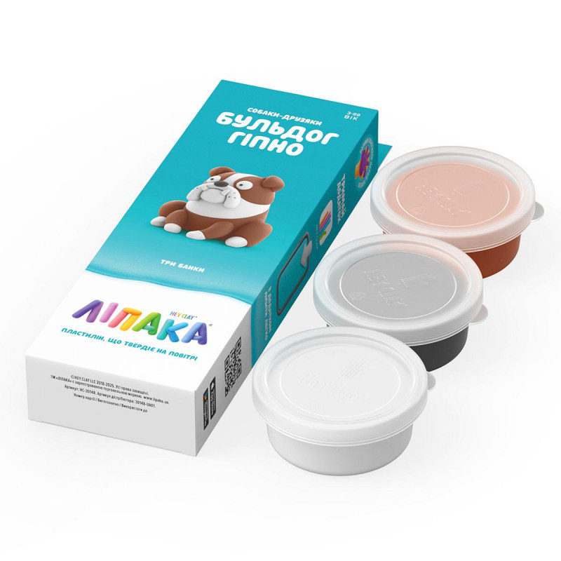 Набір пластиліну, що самостійно твердне, ЛІПАКА - СОБАКИ-ДРУЗІ: БУЛЬДОГ ГІПНО - розважить і малюків, і дорослих. За допомогою анімаційних інструкцій у додатку HEY CLAY Ви зможете зліпити собаку. А завдяки компактним розмірам, набір зручно брати із собою. Пластилін твердне на повітрі протягом 24 годин, після чого можна грати створеними фігурками.