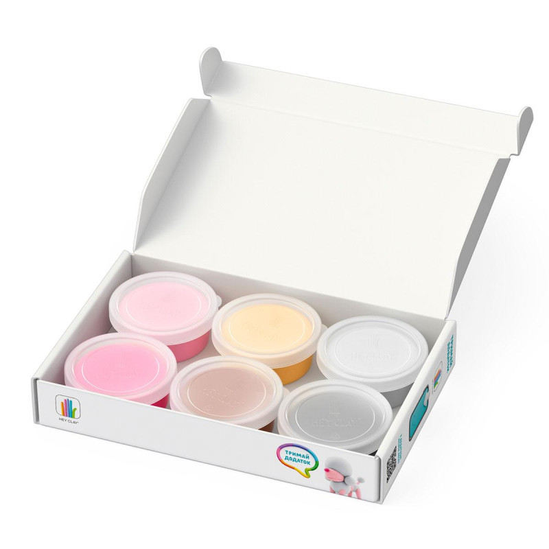 Набір може входити до 6 різних кольорів (баночка може містити пластилін двох різних кольорів).