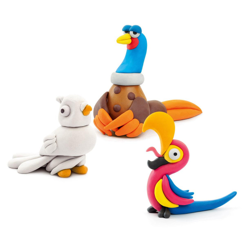 Набір самозатвердіючого пластиліну ЛИПАКА – ПТАХИ: ПАПУГАЙ АРА, ФАЗАН, ГОЛУБ – розважить і дітей та дорослих. За допомогою анімаційних інструкцій у додатку HEY CLAY, Ви зможете зліпити 3 кумедні пташки. Пластилін твердне на повітрі за 24 години, після чого можна грати створеними фігурками.